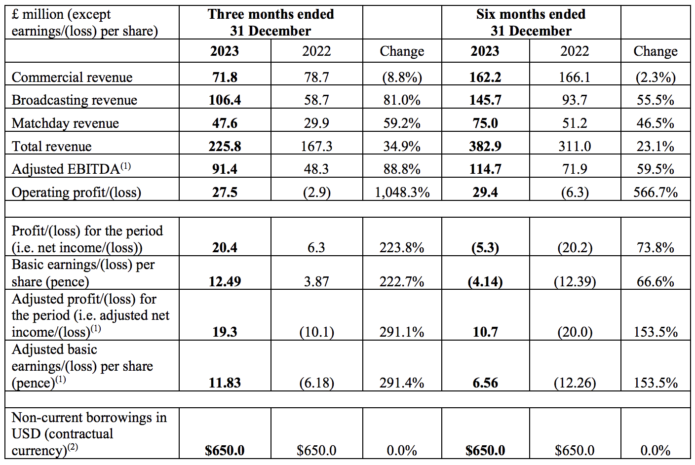 Q2 Earnings (Manchester United)