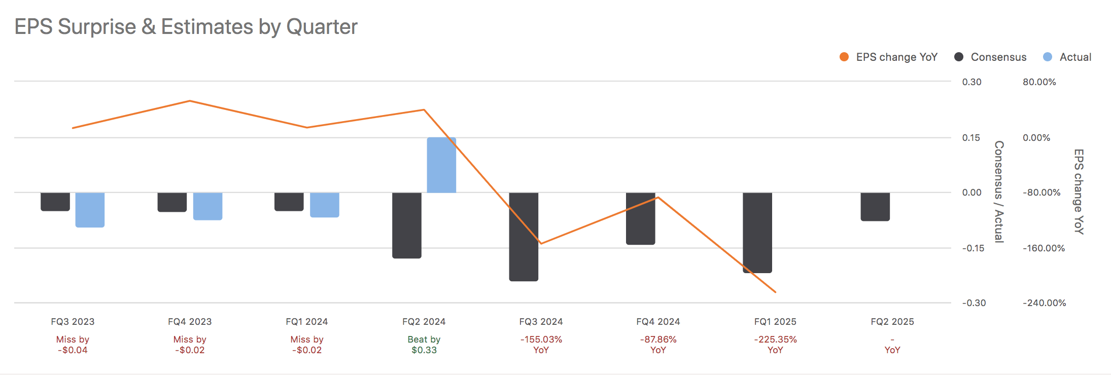 That’s as much as we can say for Manchester United’s earnings outlook. However, to end the section, I embedded a chart of the club’s recent quarterly earnings hits and misses. Believe it or not, the club’s lack of earnings momentum can stun its stock’s performance; therefore, we flag this as a risk going into June 21st’s results.