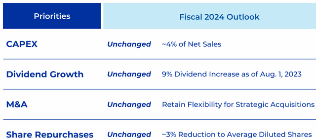 Aside from this note, let’s take a look at the overall picture. As for the other main financial goals for this fiscal year, General Mills keeps high control over its expenses and capex usually doesn’t exceed 4% of net sales.