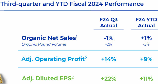 During its Q3 Earnings, General Mills actually increased its FY24 guidance, expecting its net sales to be slightly positive. At the same time, profitability is seeing great improvements up to the point its margins will end up higher than in 2019, the last normal year before the pandemic.