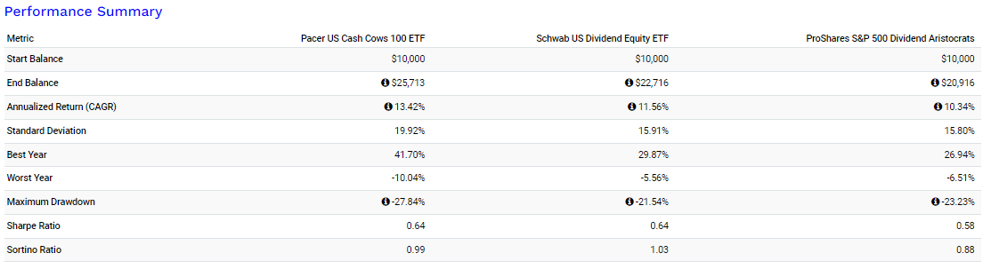 However, COWZ has outperformed many popular large-cap value dividend-oriented ETFs since its inception, including the Schwab U.S. Dividend Equity ETF (SCHD) and the ProShares S&P 500 Dividend Aristocrats ETF (NOBL).