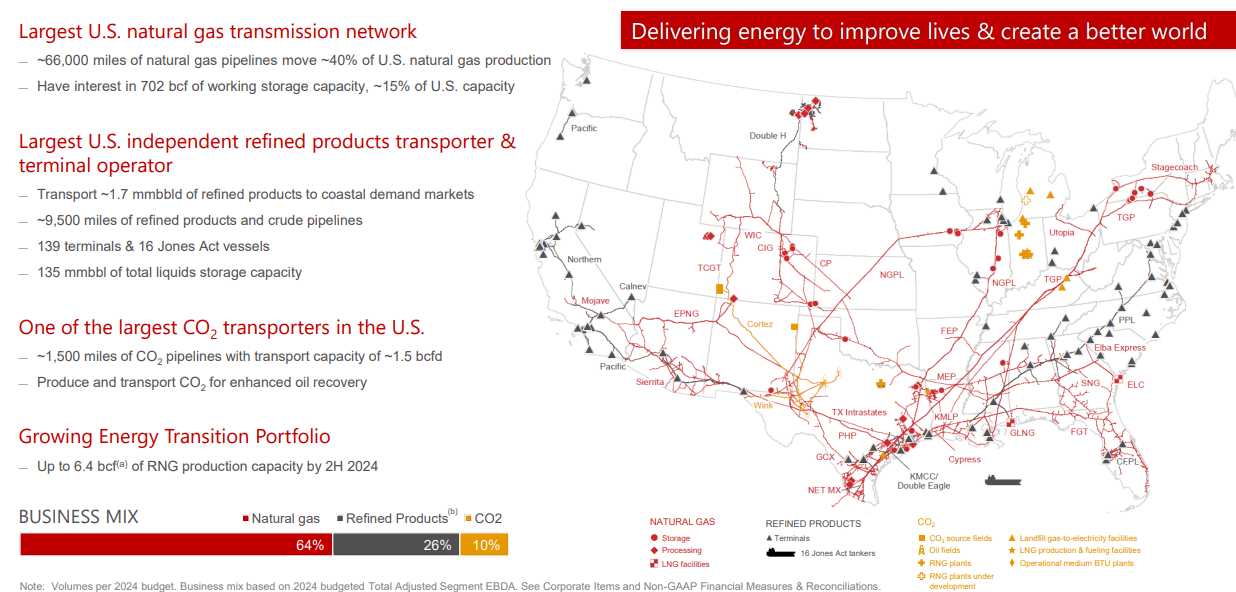 That’s important because natural gas has much more staying power than oil for the company. The company’s business is a massive 64% natural gas. The company has ~66 thousand miles of natural gas pipelines, moving ~40% of U.S. natural gas production. The company also has a ~15% interest in U.S. storage capacity, showing its strong integration to the market.