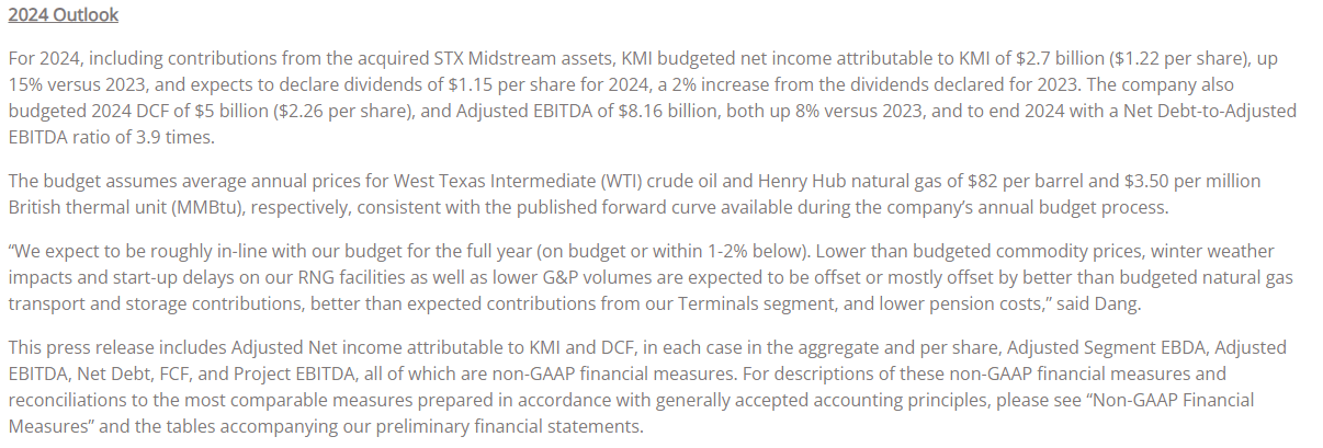 Kinder Morgan has a 2024 outlook focused on long-term shareholder returns.