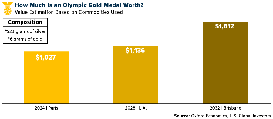 It’s for this reason, and the fact that the medals contain an iron piece of the Eiffel Tower, that Oxford Economics says it believes “winning an Olympic medal this year should yield considerable investment value.”