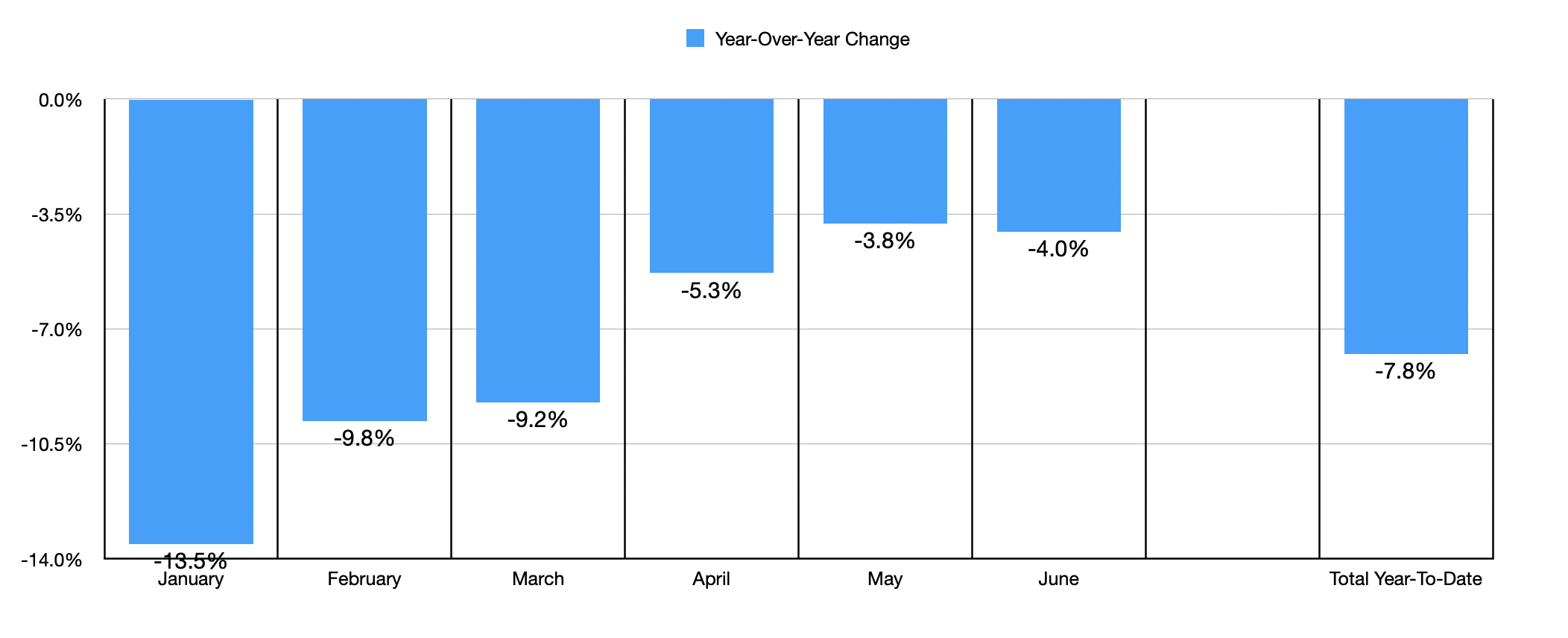 Revisiting the business, I initially thought that I would keep the company rated a ‘buy’, not only because of how cheap shares are, but also because of the surplus cash. All the company has to do is wait out this pain and it should be fine. This thought process was initially bolstered by the chart above. In it, you can see the month-to-month advance retail sales for the US, calculated by the Federal Reserve. In the chart below, you can see the year-over-year decline in overall sales for the first six months of this year compared to the first six months of last year. Even though overall sales are worse this year compared to last, the picture is gradually improving. In January, when things were at the worst, year over year sales were down 13.5%. And while the month of May was better, the decline seen in June was only 4%. This does show a gradual trend toward improvement from one month to the next. And that could be a sign of a turnaround.