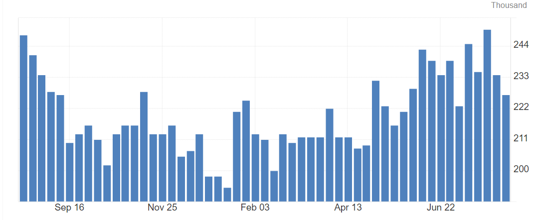 The labor market data has been better over the last two weeks based on the New Claims for Unemployment data. The New Claims dropped from 250K down to 227K.