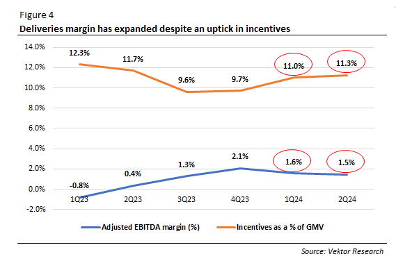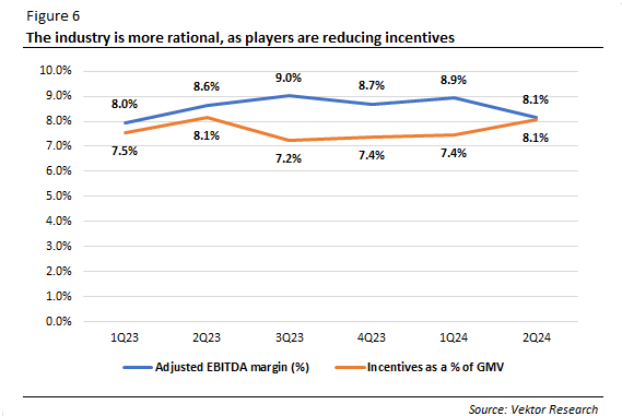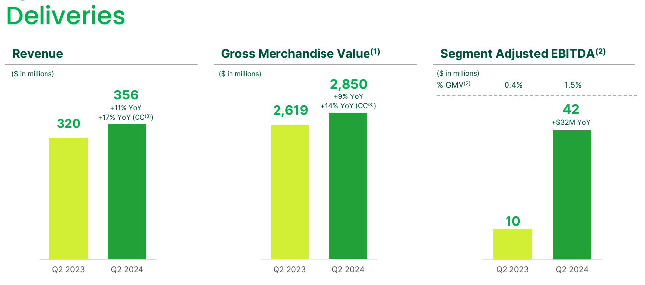 Revenue was flat quarter-on-quarter but grew 19% (Y/Y) and 23% (Y/Y) excluding foreign exchange impact. The flat sequential growth was primarily because total incentives as a percentage of GMV increased to 8.1% from 7.4% in the previous quarter. Adjusted EBITDA margin came in at 8.1%, down from 8.9% in 1Q24 and 8.6% in 2Q23.