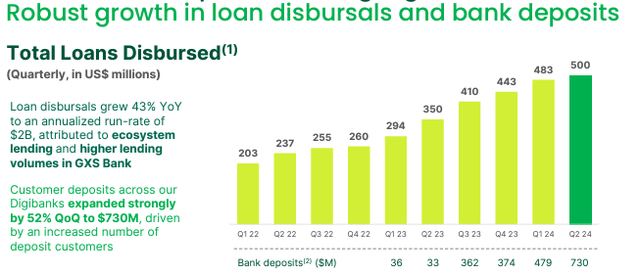Meanwhile, bank deposits were recorded at $730 million, increasing 52% (Q/Q) from $479 million in 1Q24. Management attributed the robust growth to increasing GXBank customers in Malaysia. We still expect the Financial Service segment to drive Grab’s growth. GXBank in Malaysia is yet to launch lending products, and GSX Bank in Singapore is also looking to roll out new investment products.