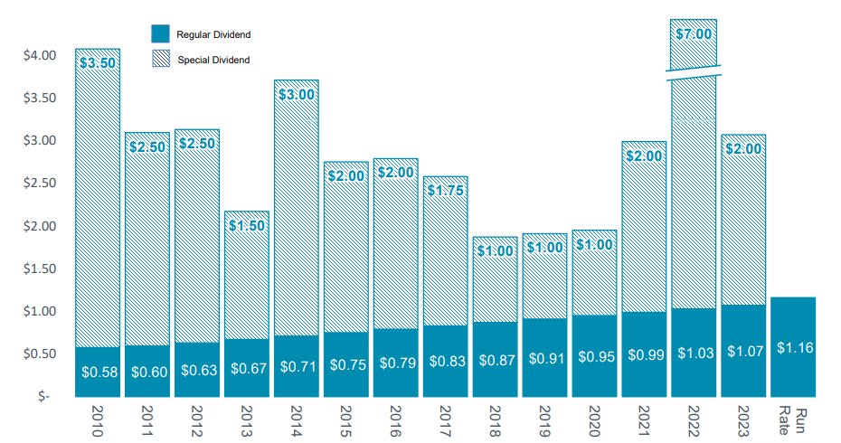 Consistent Cash Dividends Paired With Annual Special Dividends