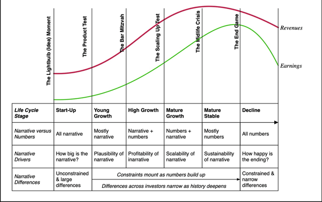All businesses, no matter where they stand in the life cycle, can be valued, but there are key differences that can be off-putting to some. A well done valuation is a bridge between stories and numbers, with the interplay determining how defensible the valuation is, but the balance between stories and numbers will shift, as you move through the life cycle: