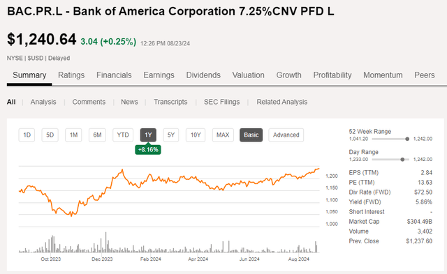 In December of last year, I argued Bank of America’s (NYSE:BAC) non-callable preferred shares were a good idea to speculate on a rate cut (and on decreasing interest rates on the financial markets). So far, the investment has done what I expected it to do. Bank of America continued to make the quarterly preferred dividend payments while the share price is currently approximately 10% higher for a total return of around 15% in the past eight months. As Bank of America recently released its Q2 results, I wanted to make sure my investment thesis for the Series L preferred shares is still valid.