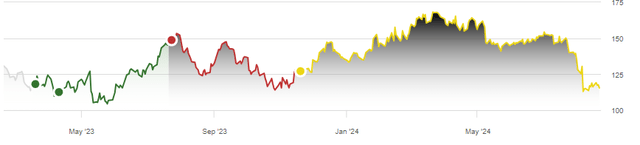 I last covered Airbnb (NASDAQ:ABNB) in November 2023 (time flies!). The article put a hold rating on the stock, with a price target of buying near $100. Here is my rating history: