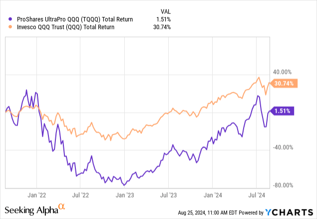 YCharts – TQQQ, Price Changes, 5 Years ProShares Website – TQQQ Risks & Uses, August 25th, 2024