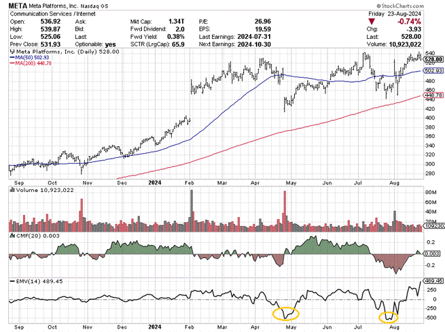 StockCharts.com – Meta Platforms, 1 Year of Daily Price & Volume Changes, Author Reference Points
