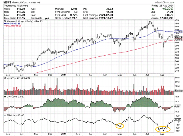 StockCharts.com – Microsoft, 1 Year of Daily Price & Volume Changes, Author Reference Points