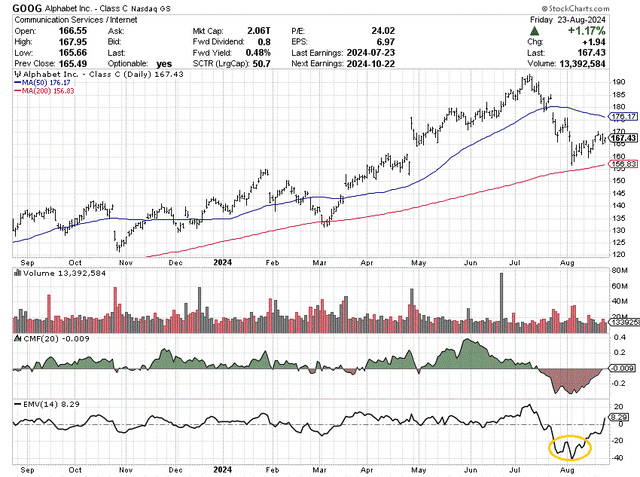 StockCharts.com – Alphabet, 1 Year of Daily Price & Volume Changes, Author Reference Point