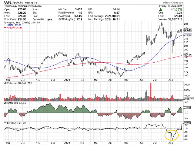 StockCharts.com – Apple, 1 Year of Daily Price & Volume Changes, Author Reference Point