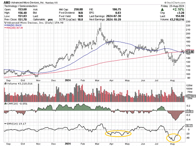 StockCharts.com – Advanced Micro Devices, 1 Year of Daily Price & Volume Changes, Author Reference Points