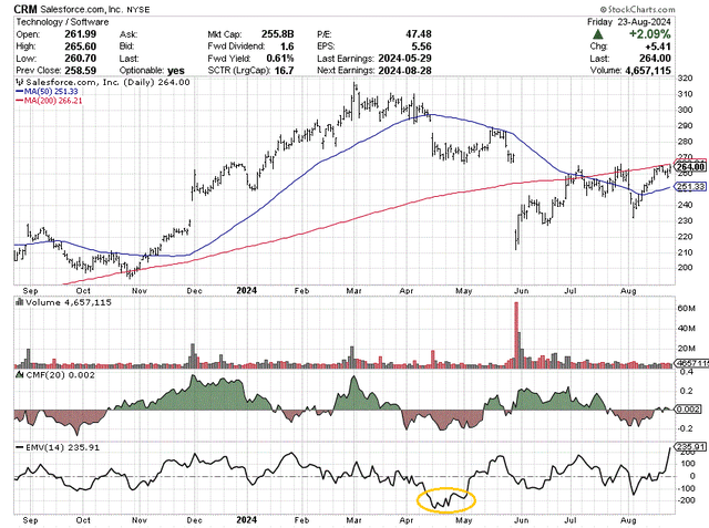 StockCharts.com – Salesforce, 1 Year of Daily Price & Volume Changes, Author Reference Point