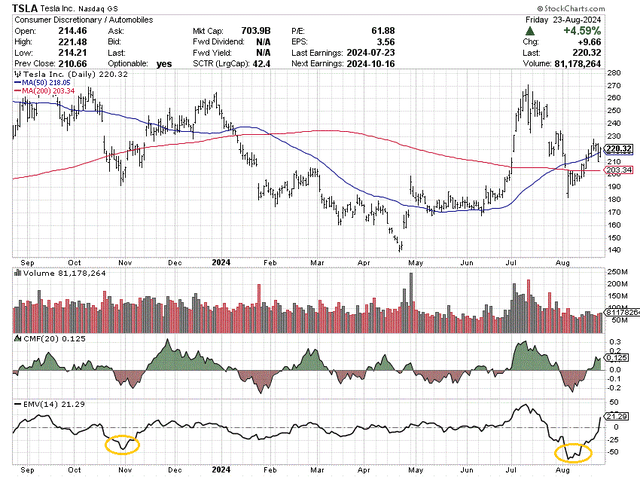 StockCharts.com – Tesla, 1 Year of Daily Price & Volume Changes, Author Reference Points