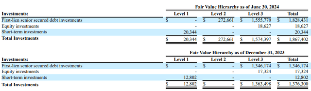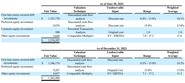 While, as mentioned above, the NAV was down slightly, KBDC improved the Total debt-to-equity ratio thanks to a second quarter IPO, some of which was used to reduce the Funding Facility. The various yield measurements were basically unchanged, with the weighted average yield on the total debt portfolio remaining unchanged at 11.7%.