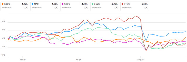 So far, KBDC is holding its own, trailing only Main Street Capital.