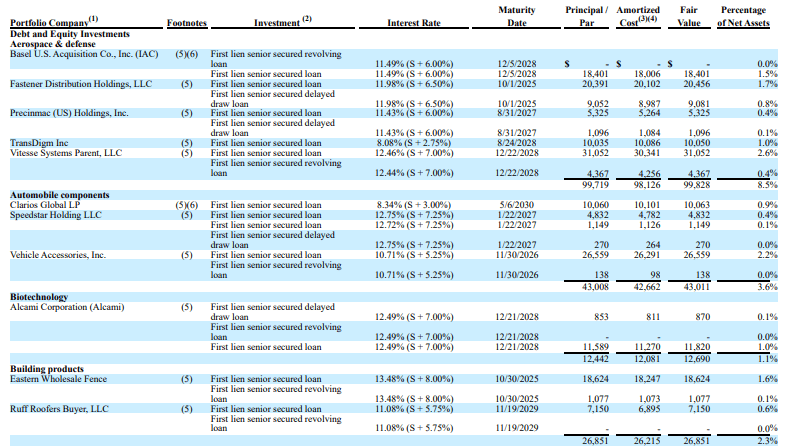 I failed to find a list of the holdings by portfolio weight, but this list by industry gives investors an idea of what terms KBDC is getting.