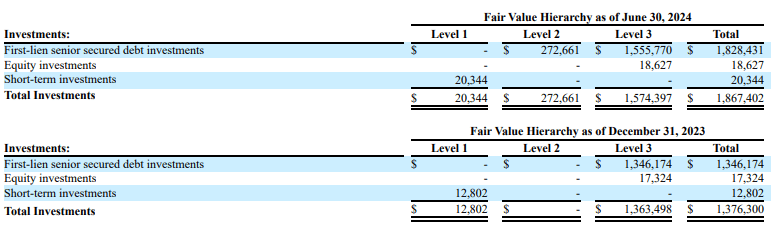 They did provide the following portfolio analytic data. Note that these show data from 6/30/24 and 12/31/23.