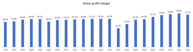 Going forward, it looks like the higher costs associated with Blackwell inventories would lead to gross margin stabilization around 74-75%: