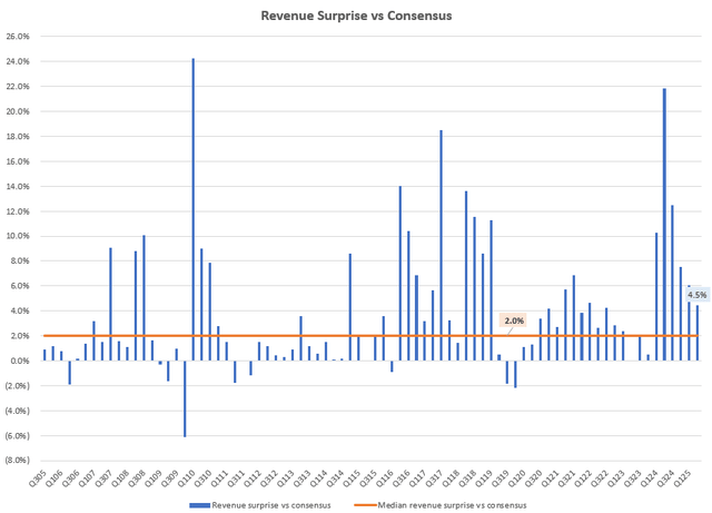 Revenue Surprise vs Consensus (Capital IQ, Author’s Analysis)