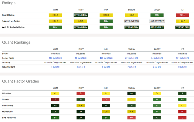 Compared to its peers, 3M sports a lukewarm valuation rating while its growth trajectory has been weak, but is forecast to improve and turn more consistent in the coming years.