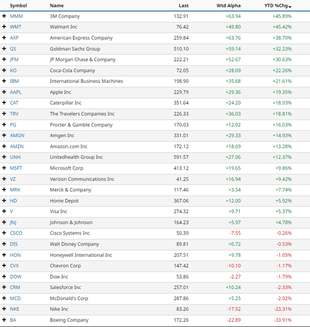 DJIA YTD Gainers
