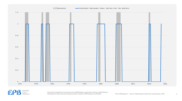The 5-Factor EPB Coincident Employment Index is flashing red, signaling a potential contraction in the labor market.