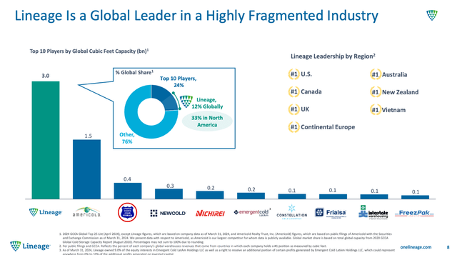 Not only is Lineage so large that its IPO was the largest IPO of the year, but it is also a giant in its industry, as no competitor comes close to its size.