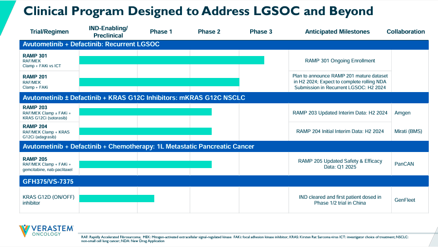 Currently, VSTM’s pipeline has a leading product candidate through the combination of Avutometinib and Defactinib. This combination therapy is indicated for recurrent Low-Grade Serous Ovarian Cancer [LGSOC]. Their complementary mechanism of action [MoA] seems particularly promising for LGSOC because Avutometinib targets RAS/MAPK while Defactinib inhibits focal adhesion kinase [FAK]. It’s worth mentioning that FAK is related to cancer cell metastasis and malignant cell evasion from the immune system. So, the mix of these drugs theoretically delivers a more complete anti-cancer treatment. VSTM’s RAMP 301 is enrolling patients in Phase 3. However, RAMP 201 was a Phase 2 registration-directed trial expected to provide mature data to finalize a rolling new drug application [NDA] in 2H2024.