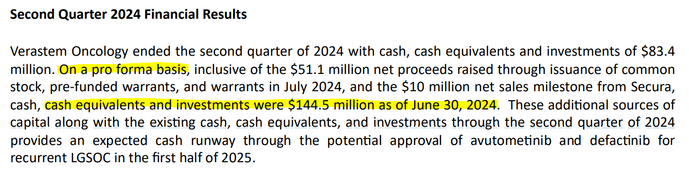 Moreover, on a pro forma basis, VSTM’s cash balance is actually $144.5 million. This includes the $51.1 million net proceeds from the capital raise and the $10 million milestone from COPIKTRA sales. I also estimate their latest quarterly cash burn at $27.6 million, factoring in CFO and Net CAPEX, which implies a yearly burn rate of $110.4 million. This gives VSTM a 1.3-year cash runway, which should be enough to carry them through the anticipated FDA approval decision by 1H2025. It also means that VSTM actually trades below its cash value if we use their pro forma figures, which is self-evidently cheap.