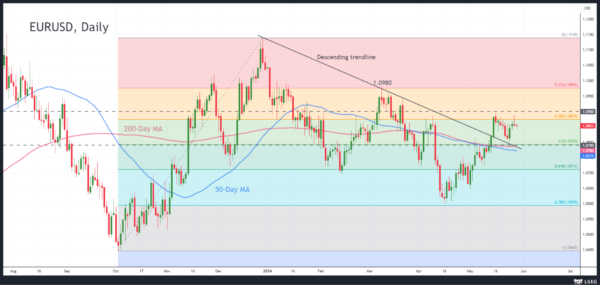 In case of stronger-than-expected numbers, the euro could take a dive towards the $1.0790 region, which lies near the 50% Fibonacci retracement of the October-December 2023 uptrend as well as the 200-day moving average.