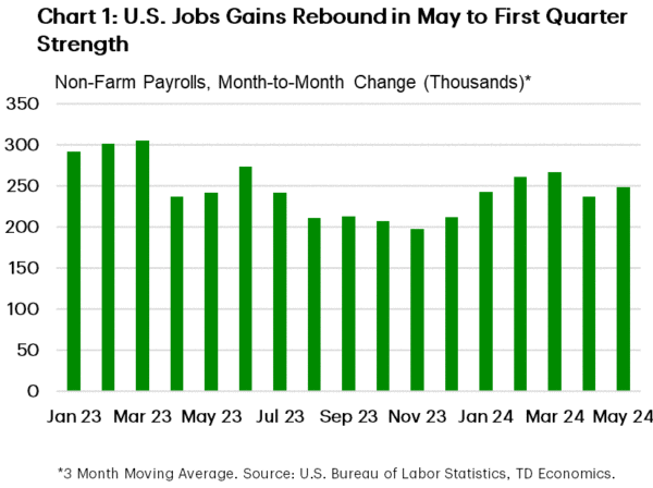 May’s jobs report showed that the economy added 272k jobs last month, exceeding consensus expectations and accelerating relative to the month prior (Chart 1). The unemployment rate ticked up modestly to 4.0% – it’s highest level in over two years – partly owing to a decline in the more volatile household survey employment metric. On aggregate the labor market remains solid, with broad-based contributions to non-farm payrolls in May, which helped to push up average hourly earnings. However, the uptick in the unemployment rate combined with the normalization in the job opening rate in April point to likely cooling moving forward.