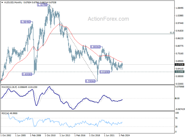 In the bigger picture, overall, price actions from 0.6169 (2022 low) are seen as a medium term corrective pattern, with rise from 0.6269 as the third leg. Firm break of 0.6798/6870 resistance zone will target 0.7156 resistance. In case of another fall, strong support should be seen from 0.6169/6361 to bring rebound.