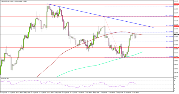 Besides, there is a major bearish trend line forming with resistance at 1.1110 on the same chart. A clear move above the 100 simple moving average (red, 4-hour) and the trend line might set the pace for a move toward 1.1150. Any more gains might call for a test of the 1.1200 zone.