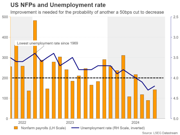 Overall, the forecasts are not pointing to a game-changing report, but any upside surprise coming on top of decent ISM prints and less-dovish-than-expected commentary by Fed policymakers could very well act as the icing on the cake of a bright week for the US dollar. Wall Street could also cheer potentially strong data, even if it translates into slower rate cuts ahead, as more evidence that the US economy is not heading into recession is nothing but good news.