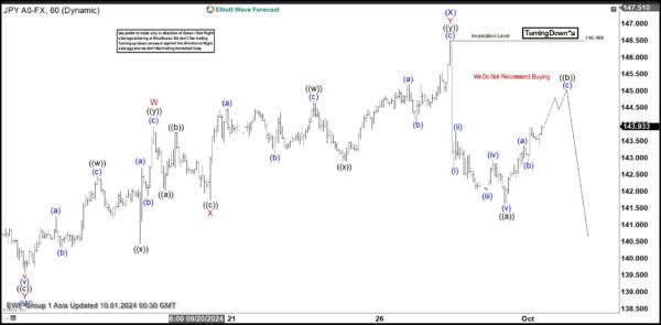 Short Term Elliott Wave View in USDJPY suggests decline to 139.57 ended wave (W). Pair then corrected in wave (X) with internal subdivision as a double three Elliott Wave structure. Up from wave (W), wave ((w)) ended at 142.46 and pullback in wave ((x)) ended at 140.43. Rally in wave ((y)) ended at 143.94 which completed wave W in higher degree. Pullback in wave X ended at 141.73 with internal subdivision as a zigzag structure.