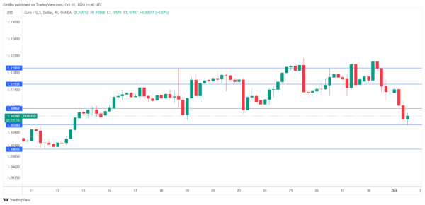 The ECB has approached the new rate-cutting cycle with caution, as high services inflation and wage growth are reminders that the battle against inflation isn’t over. The markets expect the ECB to remain on the sidelines at the October meeting and re-evaluate a possible rate cut in December.