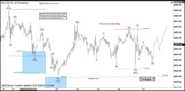Above is the Latest 1-hour Elliott Wave Chart from the 10.07.2024 London update. In which the metal is showing a perfect reaction higher taking place from the equal legs area. Right after ending the correction. Allowed members to create a risk-free position shortly after taking a long position. But a break above $2685.58 high would still be needed to confirm the next leg higher minimum towards the $2699.74- $2723.00 area & avoid double correction lower.