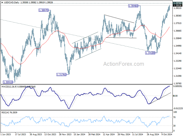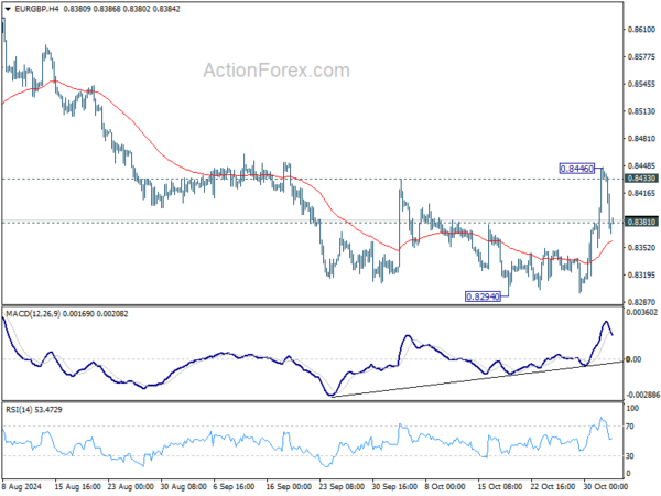 In the UK, Pound has experienced high volatility after the Labour government’s budget announcement. Markets reacted negatively, with criticism focusing on the budget’s emphasis on increased spending, tax hikes, and borrowing, while offering limited impact on economic growth. Pound initially sold off sharply, but a late strong rebound suggested that the market reaction may have been exaggerated. It’s possible that some institutional investors attempted, unsuccessfully, to trigger a more pronounced decline similar to the one observed after former Prime Minister Liz Truss’s mini-budget two years ago, which led to a steep fall in sterling.