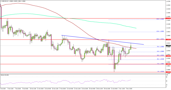 The British Pound started an upside correction from the 1.2840 zone against the US Dollar. GBP/USD climbed above the 1.2880 and 1.2950 resistance levels.