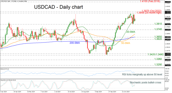 USDCAD has been developing above the 20-day simple moving average (SMA) since the bounce off the 1.3815 support level and is trying to regain ground.