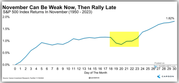 The S&P 500 and Nasdaq 100 rose 1.4% and 1.6% respectively. Now, there is something that caught my eyes recently and it was the historical performance of US stocks in the month of November. Historically US stocks experience a strong month of November with the last week of the month experiencing a significant rise. This usually carries on in December in what is affectionately called the ‘santa rally’. WIll history repeat itself?