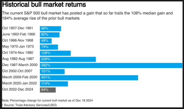 The S&P 500 has gained an average of 12.3% following the eight instances of back-to-back 20% annual gains since 1950, according to Ryan Detrick, chief market strategist at Carson Group, compared to a 9.3% overall average increase over that time. The index increased six of the eight times.