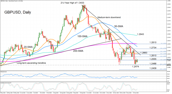 Any recovery attempt would first need to overcome the 61.8% Fibonacci retracement of the November-December upleg at 1.2610 and then battle the 20-day simple moving average (SMA) at 1.2663 before cracking the descending trendline.